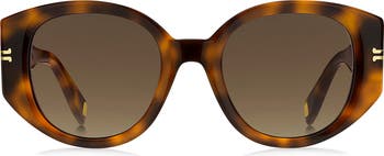 Bold round frames and goldtone accents at the temples bring a modern vibe to these stylish sunglasses made with full UV protection.
