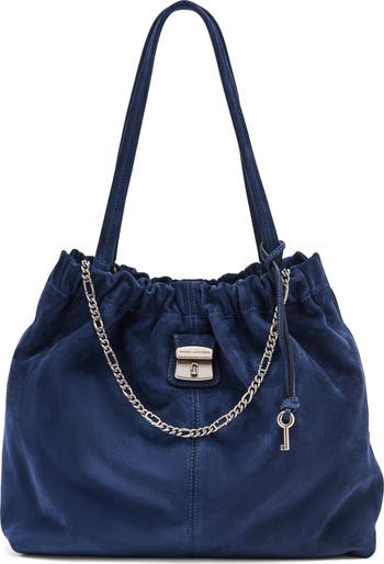 Brushed logo hardware and a ruched topline highlight the supple suede exterior and voluminous profile of a roomy tote suspended from elongated shoulder straps for comfortable wear.