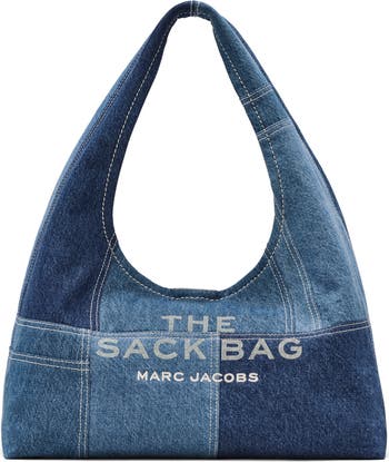 Mixed-media denim pieces create a patchwork-inspired design on a slouchy shoulder bag complete with a spacious interior and removable zip pouch for easy organization.