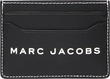 Bold graphics inspired by a MARC JACOBS hangtag bring a playful flourish to a leather card case that's perfect for when you want to travel light.