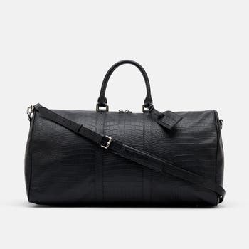 Sturdy and stylish, this Marc Nolan 55L weekender is crafted with a 10.10oz duck cotton canvas lining. Solid metal hardware and a premium UCAN two-way zipper ensure long-lasting performance, while dual top handles and an adjustable strap with removable shoulder pad provide versatile carry options. Fully lined interior features zipper and slip pockets plus an interior key clip to keep essentials organized. Dimensions: 20.5" L x 12.6" W x 13.8" H.