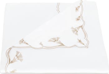Drifting off to dreamland is so much easier when you do it on the soothing softness of this 600-thread-count Egyptian-cotton sateen duvet cover that's delicately embroidered with elongated, scalloped-floral motifs.