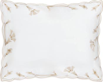 Drifting off to dreamland is so much easier when you do it on the soothing softness of this Egyptian-cotton sateen pillow sham that's delicately embroidery with elongated, scalloped-floral motifs.