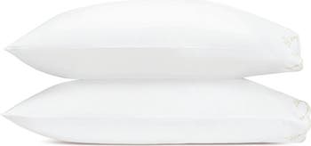 Drifting off to dreamland is so much easier when you do it on the soothing softness of these 600-thread-count Egyptian-cotton sateen pillowcases that are delicately embroidered with elongated, scalloped-floral motifs.