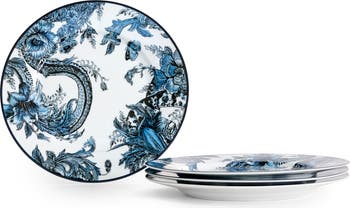 - An invitation to live artfully, the Marchesa Monarcha 4-piece Porcelain Salad Plate Set elevates everyday dining with couture-inspired elegance. Inspired by the opulent muse Marchesa Luisa Casati, rich blue florals and hand-drawn motifs are beautifully rendered on fine porcelain.Crafted with precision, it pairs artistic luxury with everyday ease—dishwasher and microwave safe for effortless, elevated entertaining. Set includes 4 Salad Plates (8.3 inches).