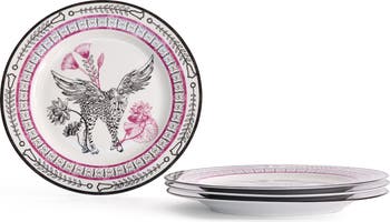 - An invitation to live artfully, the Marchesa Serengeti 4-piece Porcelain Dinner Plate Set elevates a classic cheetah print through a refined, modern lens. Whimsical yet sophisticated, the design balances bold artistry with romantic details to create an eclectic, high-end tablescape. Exquisitely crafted- this collection delivers statement-making luxury and exceptional quality for dining beautifully, on every occasion. Set includes 4 Dinner Plates (10.6 inches). Details: