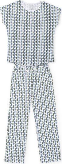 Women's pima short sleeve top with matching lounge pants. Pants have a waistband with a drawstring and hit just above the ankles. Made from 100% Peruvian Cotton.