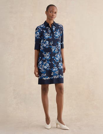 A breezy shirt dress that skims the silhouette, soft drape and subtle tailoring create an elegant day to evening look.