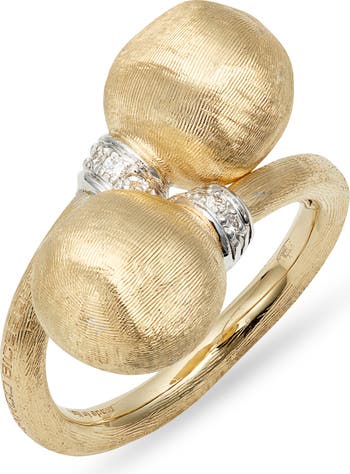Pavé diamonds cuff the crossover silhouette of this 18-karat-gold ring that features sculptural, organic-inspired spheres and a hand-engraved finish.