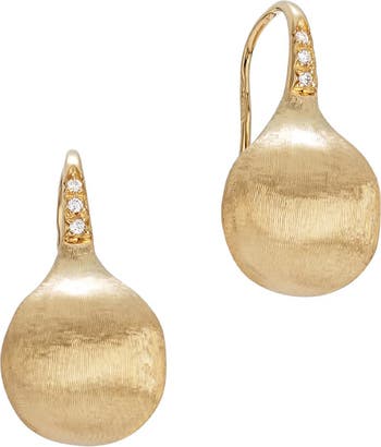 Bubbly, contoured dewdrops of 18-karat gold are finely etched and topped with diamonds to form these sensuous, sophisticated earrings.