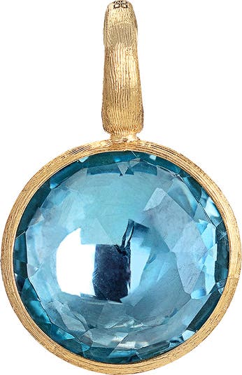 Update your jewelry rotation with this dazzling blue topaz pendant set in regal 18-karat gold with allover etching.