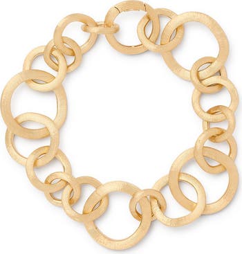 Hand-engraved links of gorgeous 18-karat gold alternate in size while bringing radiance to this Italian-crafted bracelet.