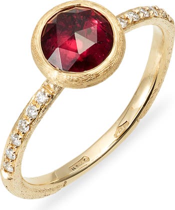 A bezel-set stone and pavé diamonds bring captivating color and sparkle to this hand-engraved ring handcrafted in Italy from 18-karat gold.