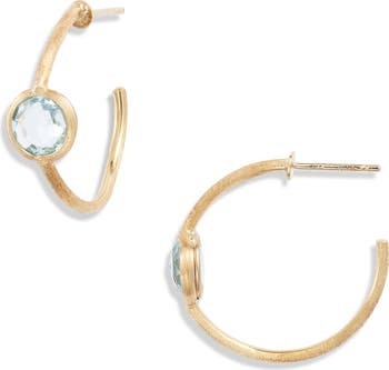 Shimmering semiprecious stones punctuate hand-engraved hoops of 18-karat gold.