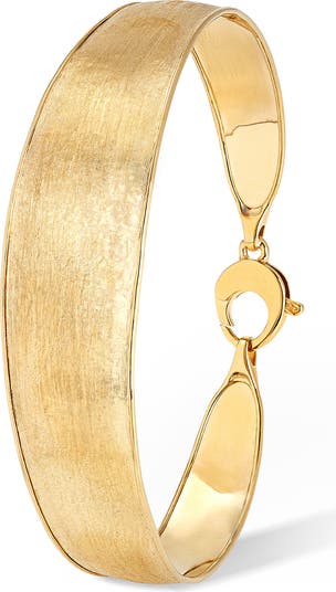 A petal-like silhouette lends organic shape to this 18-karat gold bracelet hand-engraved with hallmark Florentine techniques.