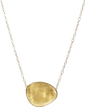 An organically shaped pendant inspired by the lunaria seedpod is rendered in 18-karat gold and hand-engraved by Italian artisans in this delicate, wear-with-everything necklace.