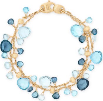 Faceted topaz are sprinkled like drops of dew over this layered bracelet inspired by organic forms. Hand-engraved detailing furthers the dimension with ancient Florentine techniques.