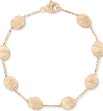 Flattened discs hand engraved by Italian artisans pop along a dainty chain in this wear-everywhere bracelet of 18-karat gold.