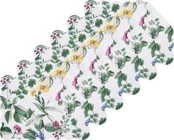 Marcy Blooms Scalloped Placemats Set of 6 Floral Design All, 13" x 19"