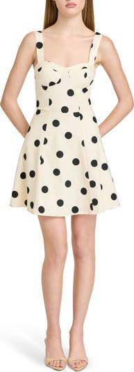 Add a retro beat to your black-and-white collection with a darling dress offered with a bustier-styled bodice.