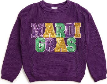 The Mardi Gras Knit Sweater is a fun and festive sweater for any Mardi Gras celebration or everyday wear!