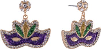 Hallmark Mardi Gras Mask Stone Earrings, Main, color, Purple