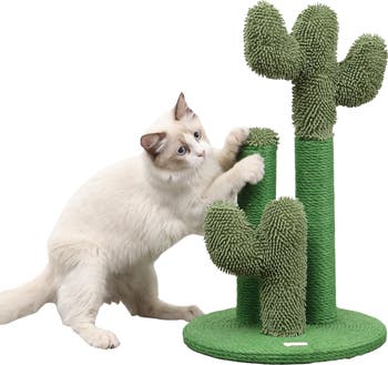Keep your cats happy and healthy with our modern, sturdy cactus cat scratching post. Covered in durable jute for scratching, with plush fabric on the arms and a wide base. Small cactus design is perfect for a bedroom or living room.