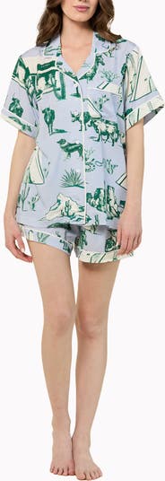 Our Women’s Pajama Shorts Set — is cut in a timeless silhouette with classic piping detail. The shorts’ elastic waist and adjustable ribbon tie ensure a custom, universally flattering fit.