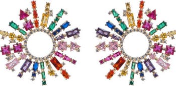 Cluster Earrings adorned with mixed rainbow zircon crystals in 14k Gold Vermeil.