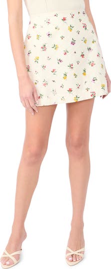 Colorful blooms framed by mini embroidered eyelets boost the charm of this structured miniskirt cut from breathable cotton.