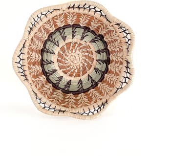 The sweet Margarita Basket is delicately handwoven from pajón, a native grass of the Guatemalan Highlands, and sustainably harvested longleaf pine needles. Designed and handmade by the women of Mayan Hands' El Triunfo cooperative, this basket is a wonderful tabletop accent, but was designed to be used! Native grass, pine needles, raffia 7" diameter, 1 1/2" high