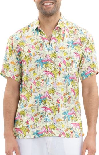 Whether you’re off to the islands, or dreaming about them, this limited edition Margaritaville Hawaiian shirt is ready to pop off in paradise and feel like 24 parrot gold out there. Designed in collaboration with the iconic Margaritaville, this lime short sleeve aloha shirt mixes lifestyle, leisure and 5 o'clock limes to keep you on Island Standard Time whenever you wear it.