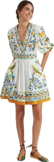 With its deep V neckline, cinched waist and frisky hemline, our new Margherita Dress is all about celebrating you petite babes out there. It’s seriously pretty with a thick waistband that draws you in, while the puffy skirt and sleeves are plenty romantic thanks to our bouncy cotton poplin. Spot the lucky pepper in this stunning Naples-inspired hand-placed print! Also great on our leggy legendary ladies, we see this beauty as your new seaside to soiree BFF, but it’s cute for summer weddings too.