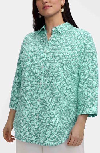 Soft cotton sateen ensures your everyday comfort when you slip into this polished button-up covered in a beautiful geometric-lattice print.