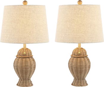 Our pair of classic mid-century wicker lamps features a woven ginger-jar base with a linen shade. These 20.5" tall lamps make a perfect pair for the bedroom, living room, or entry console. The timeless silhouette is ideal for a mid-century home, rustic cottage or beach house.