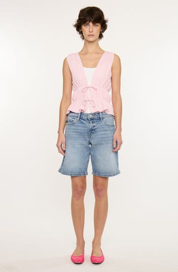 Margo Essentials Mid Rise Bermuda shorts are designed for comfort and style, featuring a medium wash and a fit that won't bag out. With a classic button closure and five pockets, these shorts are perfect for any casual outing.