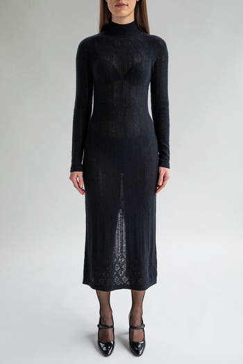 The Margot features a lace pointelle pattern for a sheer effect knitted in the softest cashmere. It is designed to be a fitted silhouette with a mock neck and slim sleeves. An added center back slit for ease and movement. This lightweight sweater is the perfect transitional piece.