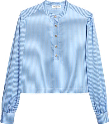 A modern take on the classic popover shirt, this striped version is crafted in Italy from soft silk with gently gathered sleeves and metallic dome buttons.