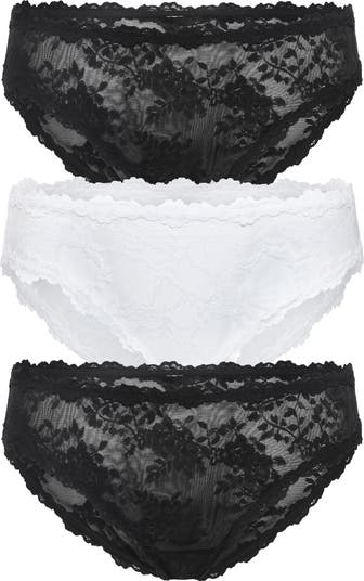 Scalloped edges add to the delicate look of these stretchy and sheer floral-lace bikini briefs designed to disappear under clothing.