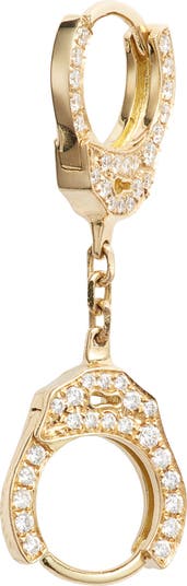 Get a lock on style with this diamond-traced, double-handcuff earring designed to be worn in two different lobe piercings.