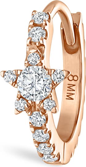 A hinged huggie reflecting the NYC-based jewelry designer's luxe yet whimsical aesthetic lights ups your ear with a twinkling diamond star framed in pavé.