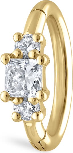 A brilliant princess-cut diamond takes center stage on this 18-karat-gold clicker hoop that makes a luxe addition to your stack.