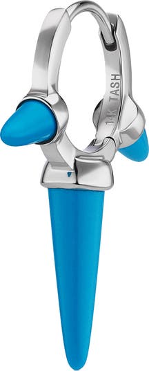 Refined yet rebellious, the NYC brand's punk-rooted huggie in a triple-spiked design of turquoise and 14-karat gold makes an edgy addition to a custom ear.