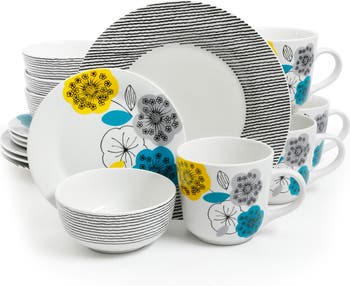 Brighten your tabletop with the Gibson Home Marigold 16 Piece Fine Ceramic Dinnerware Set! This colorful floral collection has artisanal appeal that is perfect for both everyday use and special occasions. The Marigold Fine Ceramic Dinnerware Set is contemporary and will blend seamlessly with a wide variety of home decor and table settings. Perfect for everyday use from formal dinners to casual meals.