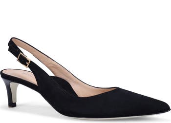 A pointy toe elongates the streamlined profile of an Italian suede pump featuring a multilayered, PORON®-cushioned footbed that delivers shock absorption and energy return for sustained comfort.