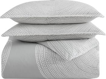 Concentric rings of tiny dots bring a modern graphic element to a standout duvet-cover set by Marimekko, the Finnish design company established in 1951. The bold yet serene set is representative of the joyful, splashy graphics and inventive textiles that embody the elevated everyday aesthetic of Finnish Modern design.