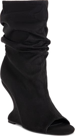 A contoured heel and slouchy shaft give sculptural appeal to this peep-toe bootie.