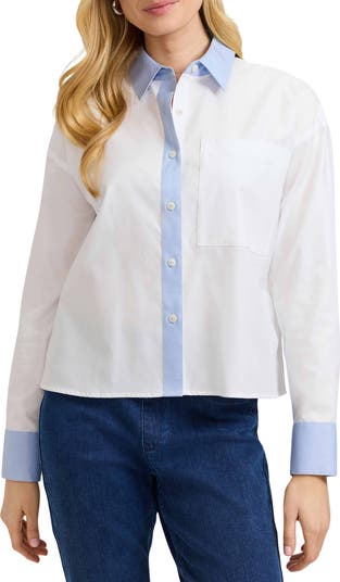 This all-cotton shirt is made with touches of contrast at the collar, placket and cuffs and finished with a straight hem to pair perfectly with your high-waist looks.