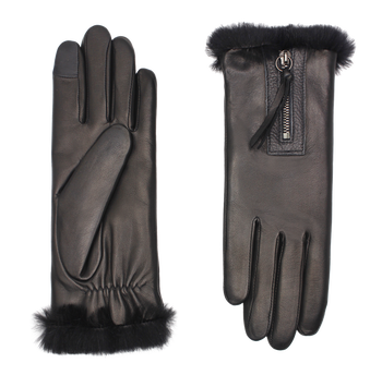 The Marina lambskin glove is lined with luxurious rabbit fur that peaks out around the wrist. It features a zipper and is compatible with all smartphones.