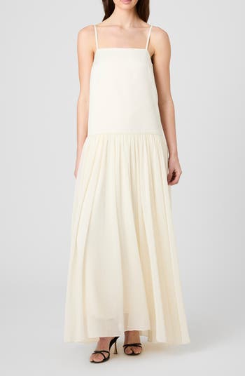 French Connection Marina Mixed Media Drop Waist Maxi Dress, Main, color, Porcelain Cream